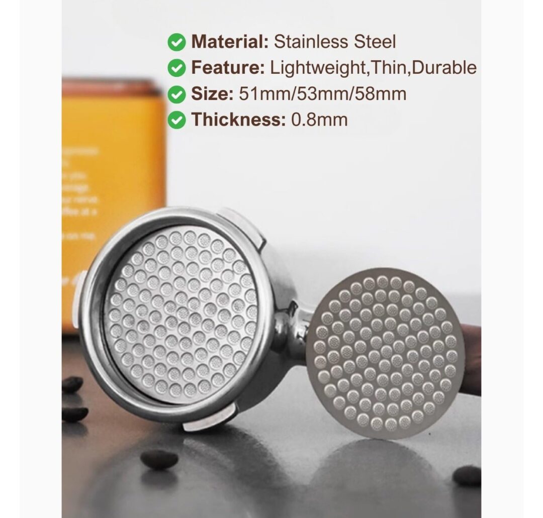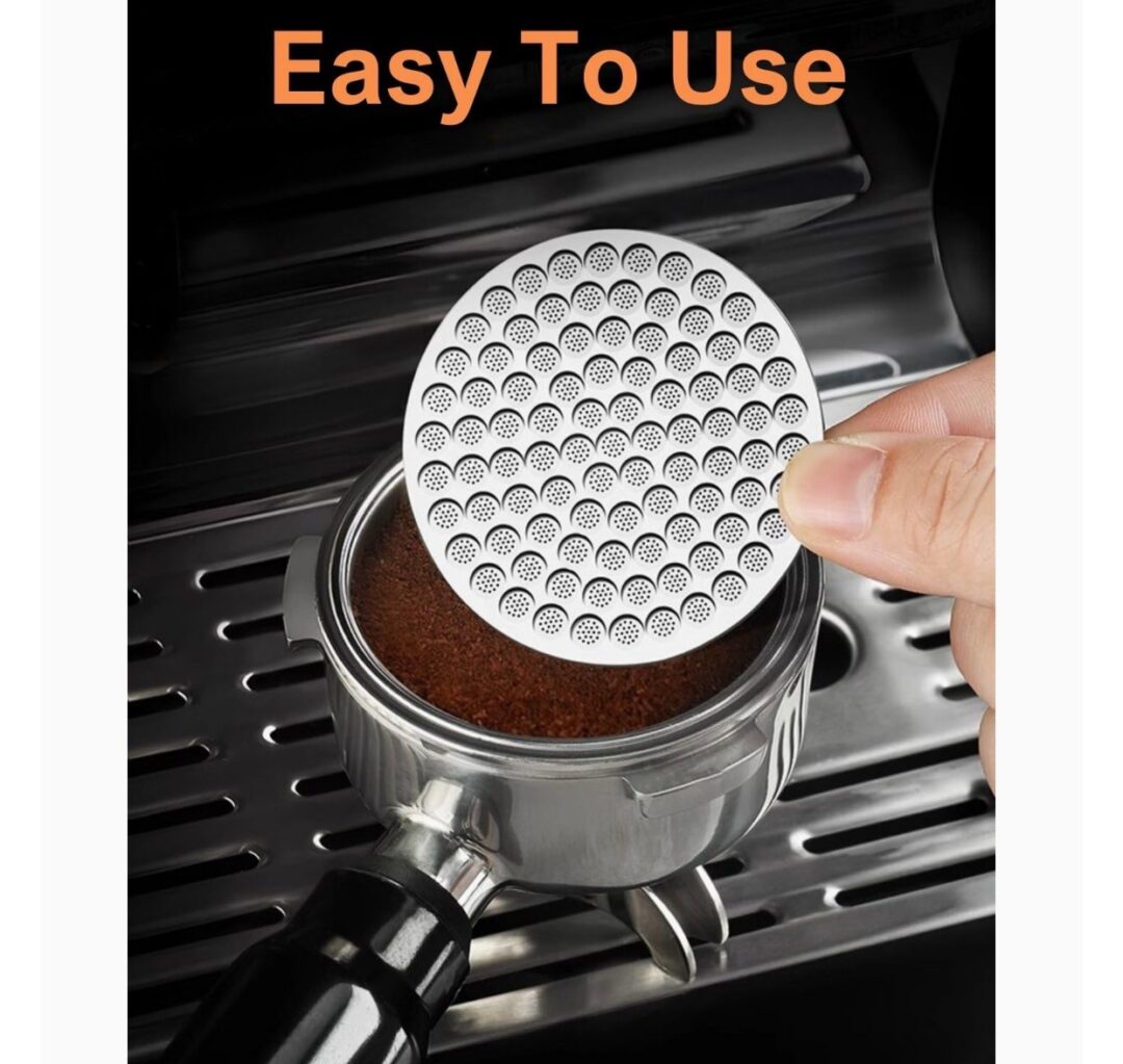 قرص معدني رفيع يُوضع فوق البن داخل الباسكت لتحسين جودة استخلاص الإسبريسو.