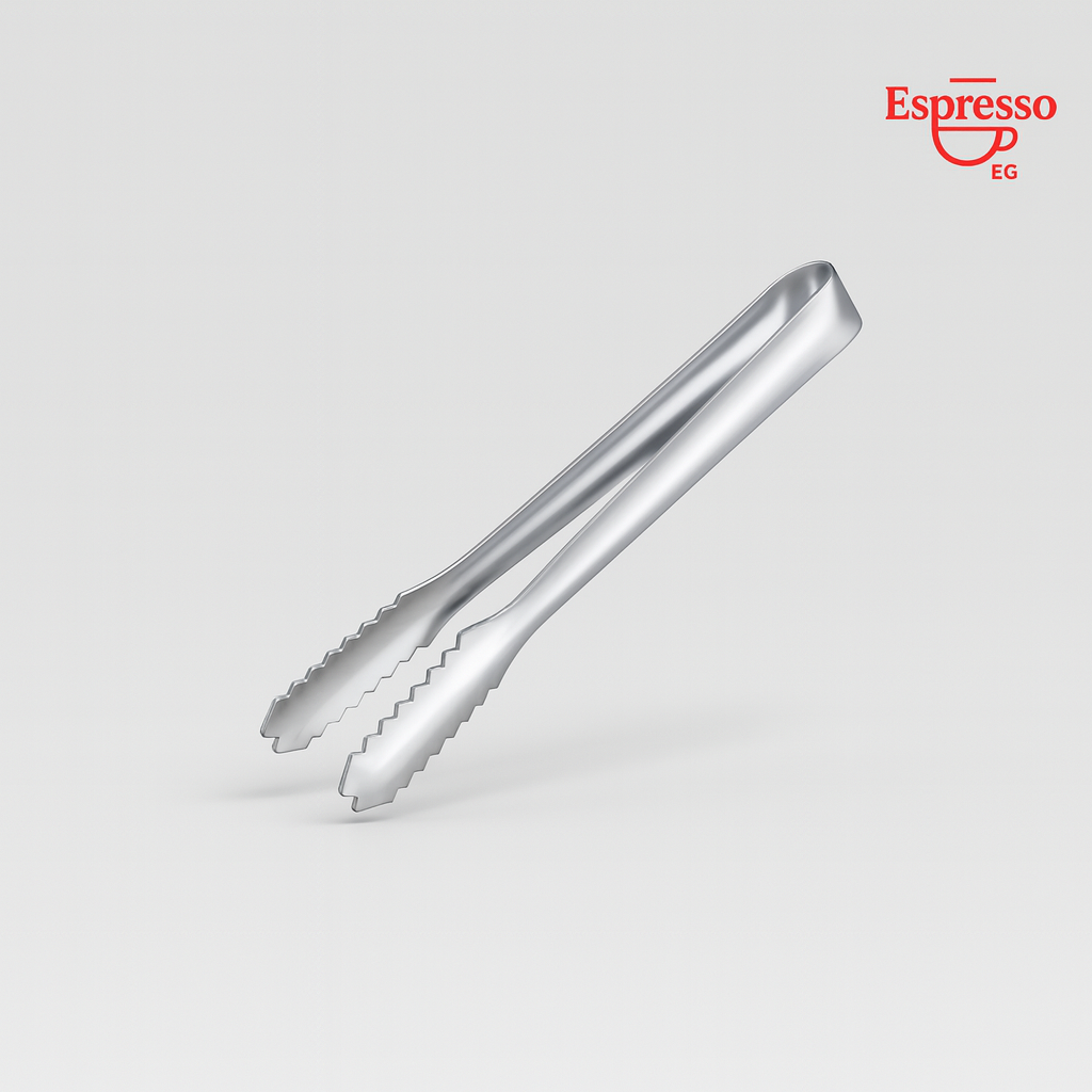 ماسك ثلج مصنوع من الستانلس ستيل المقاوم للصدأ، بتصميم مسنن يساعد على التقاط مكعبات الثلج بسهولة وثبات.