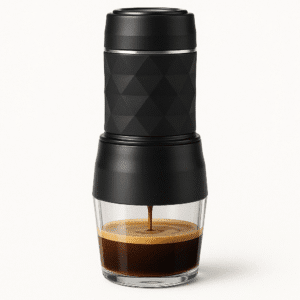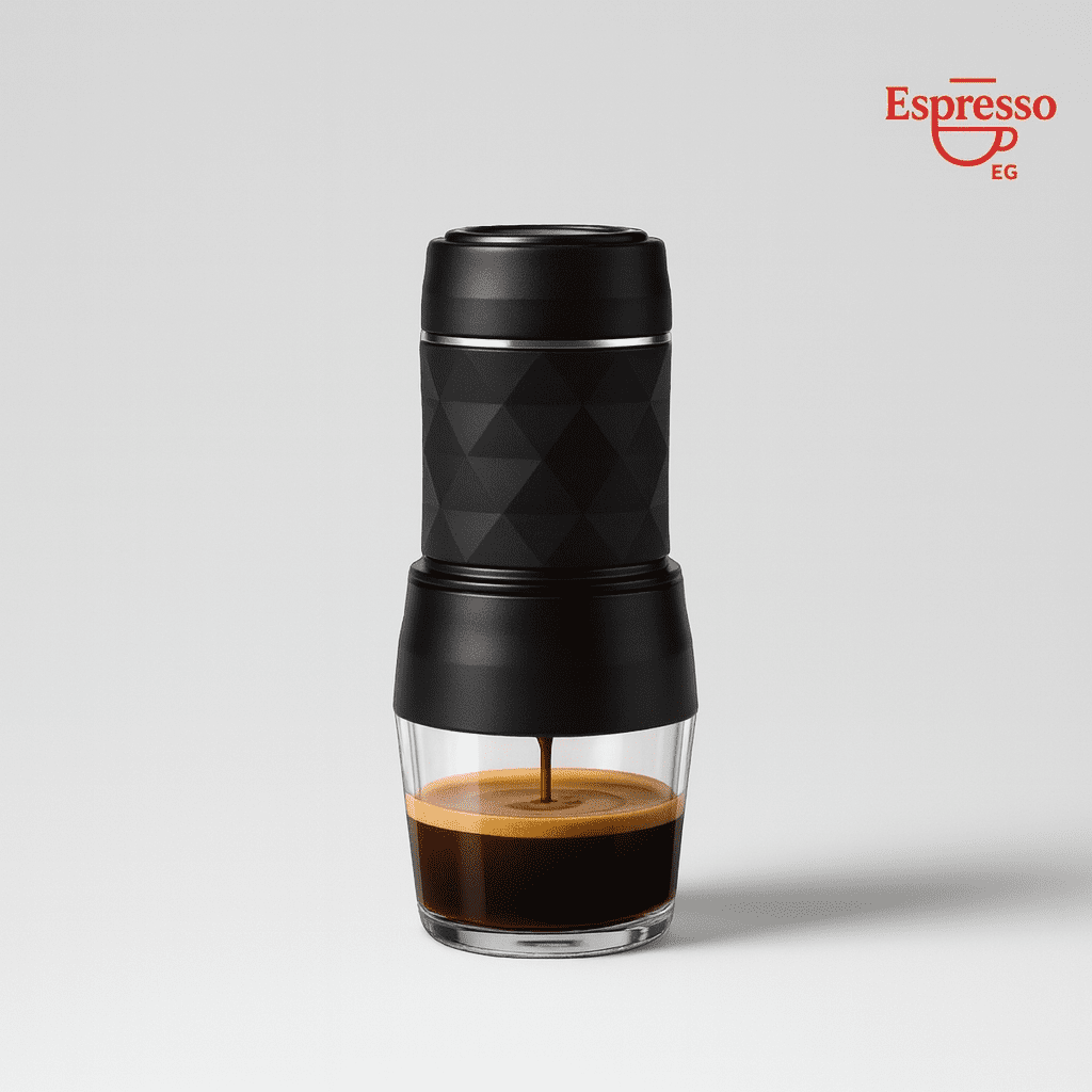 ماكينة تحضير قهوة يدوية محمولة بتصميم أنيق وعصري، مصنوعة من مواد عالية الجودة، تتيح لك استخلاص إسبريسو غني بالكريما في أي وقت وأي مكان، سواء في المنزل، المكتب أو أثناء السفر. تعمل بدون كهرباء وتعتمد على ضغط يدوي لاستخلاص القهوة.